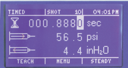 ? 時間的增加幅度可以低至 0.0001 秒,提供精確的點膠控制。